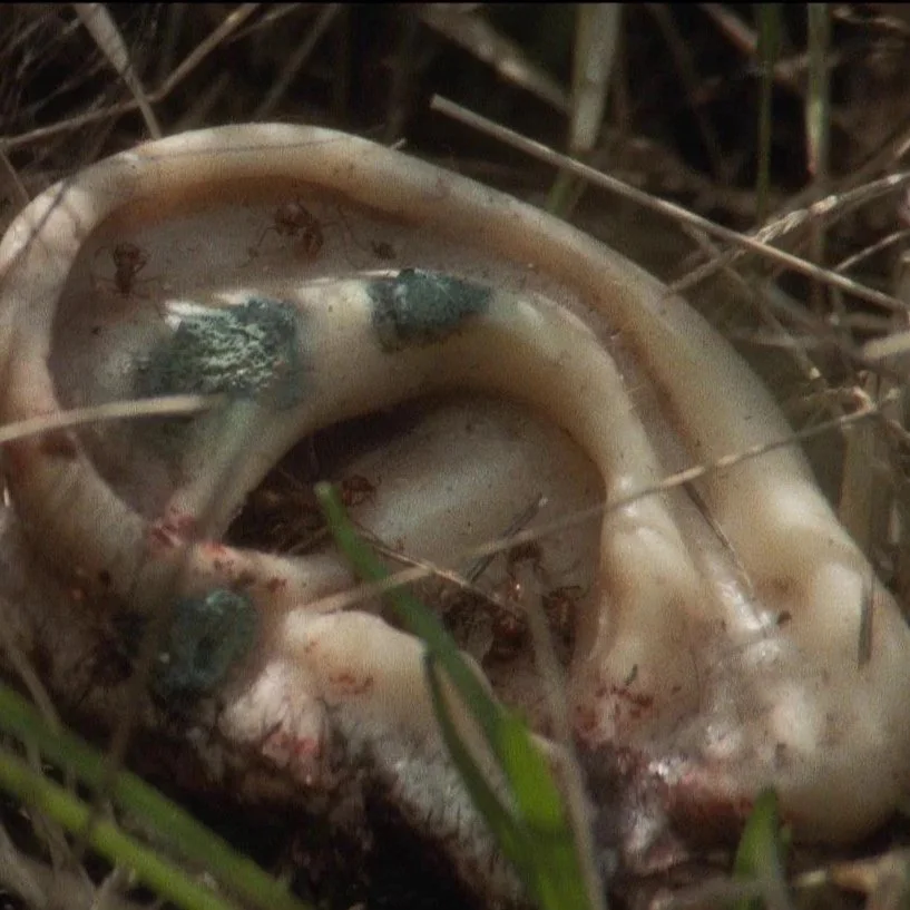 David Lynch’s Blue Velvet is one of those rare films that seems to reach beneath the surface of everything familiar and emerge with something uncanny, almost physically tangible, yet impossible to define fully. The film opens in a small American town – Lumberton, North Carolina – where the sunlight glints off red roses, yellow tulips sway in manicured gardens, and children play beneath the perfect suburban sky. But Lynch quickly undermines this serenity. A severed human ear, crawling with ants, is discovered in a field, and the viewer is plunged into a hidden world where desire, violence, and perversion dwell just below the lawnmower hum of domesticity.